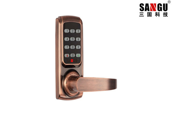 三固科技的触屏指纹密码锁采用高安全度超薄五舌不锈钢锁体,指纹密码锁锁体主材质是超薄的高强度钢板,达到公安部防盗锁级别,具有防盗、防火报警等超强功能。为人们的安全和健康保驾护航,也为指纹密码锁产业树立了典范。